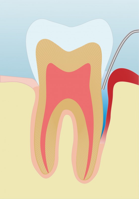 В результате перехода инфекции с верхушки корня на периодонт происходит разрушение его части, сопровождающееся образованием гнойного мешочка (абсцесса). При периодонтите воспаление затрагивает как сам зуб, так и окружающие его ткани (периодонтит - следующая за пульпитом стадия воспаления).